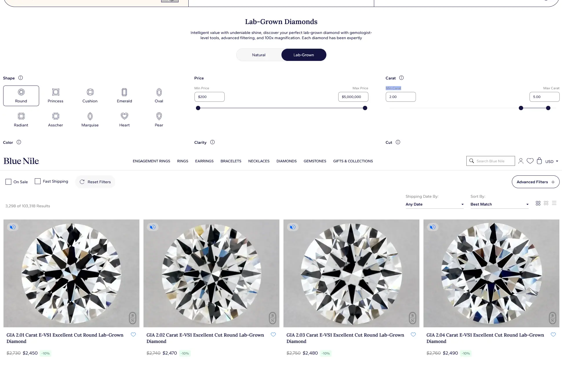 Blue Nile (least expensive): $2,500