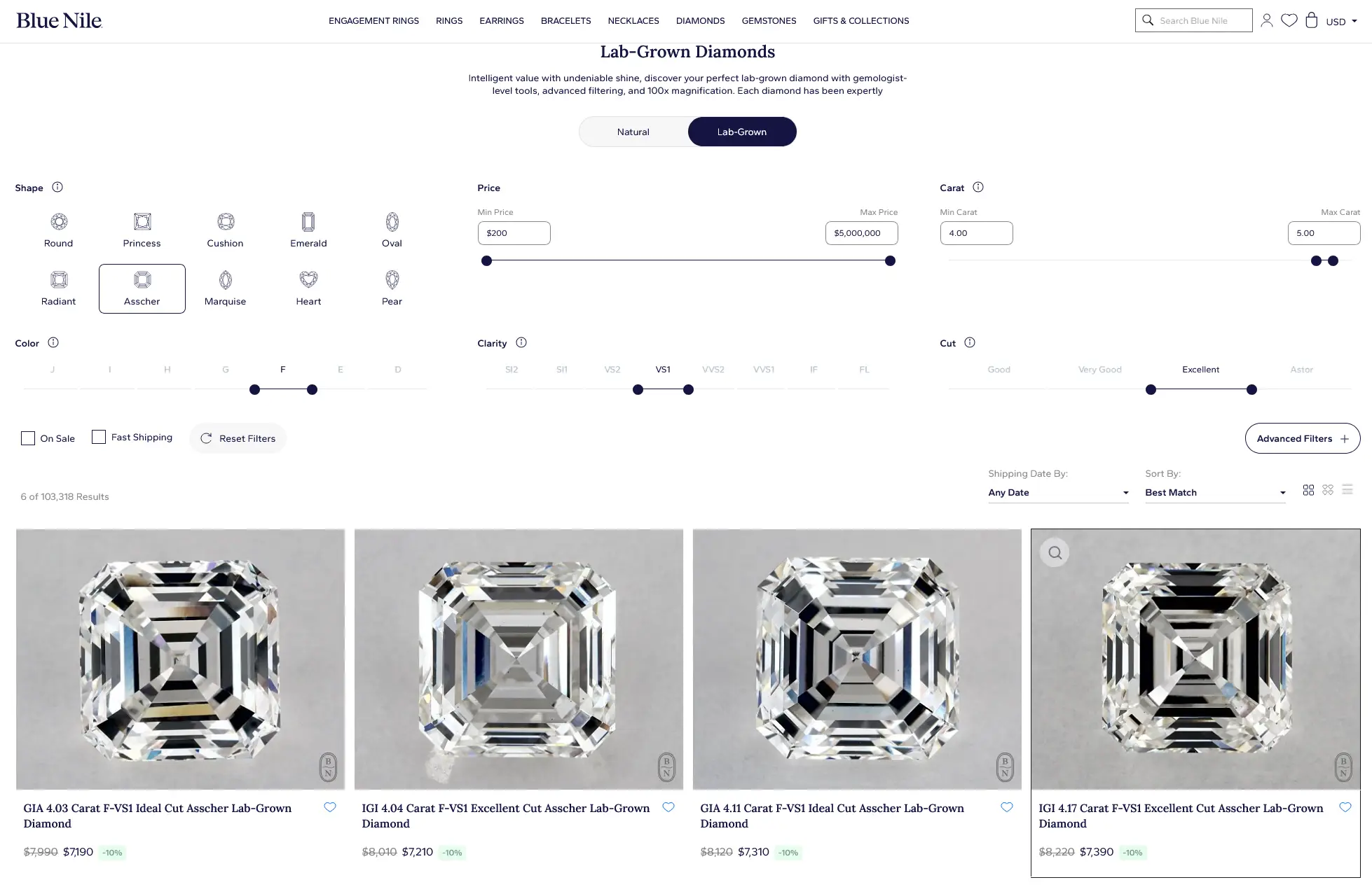 Before we get into the weeds, let's establish some facts. In the first few days of January 2026, I pulled up two 4.04-carat Asscher cut lab diamonds—both F color, VS1 clarity, Excellent cut, IGI certified. One was listed on Blue Nile for $7,210. The other was on our site for $1,790.