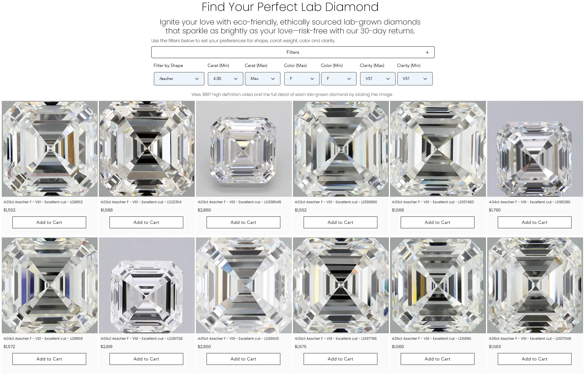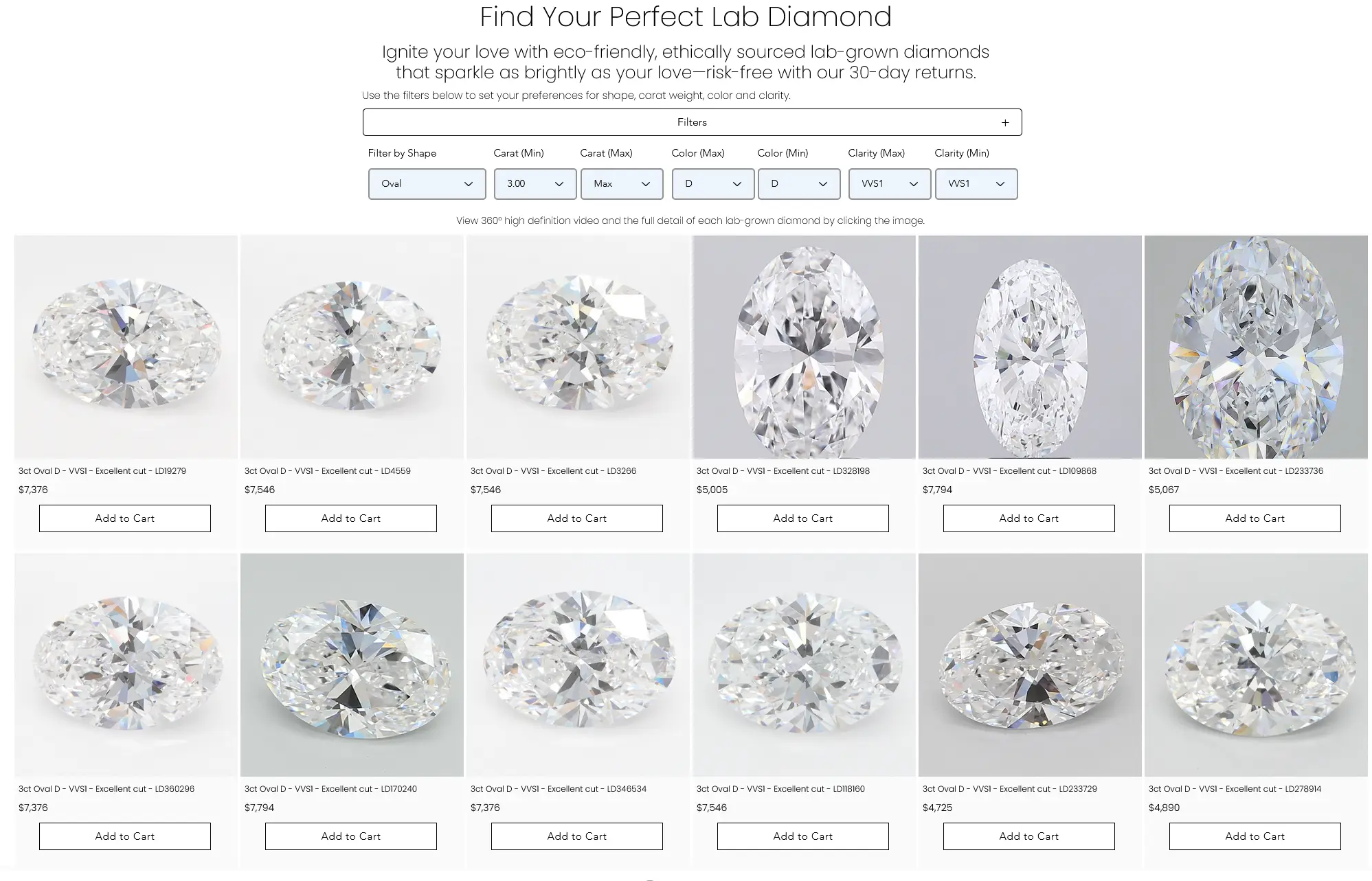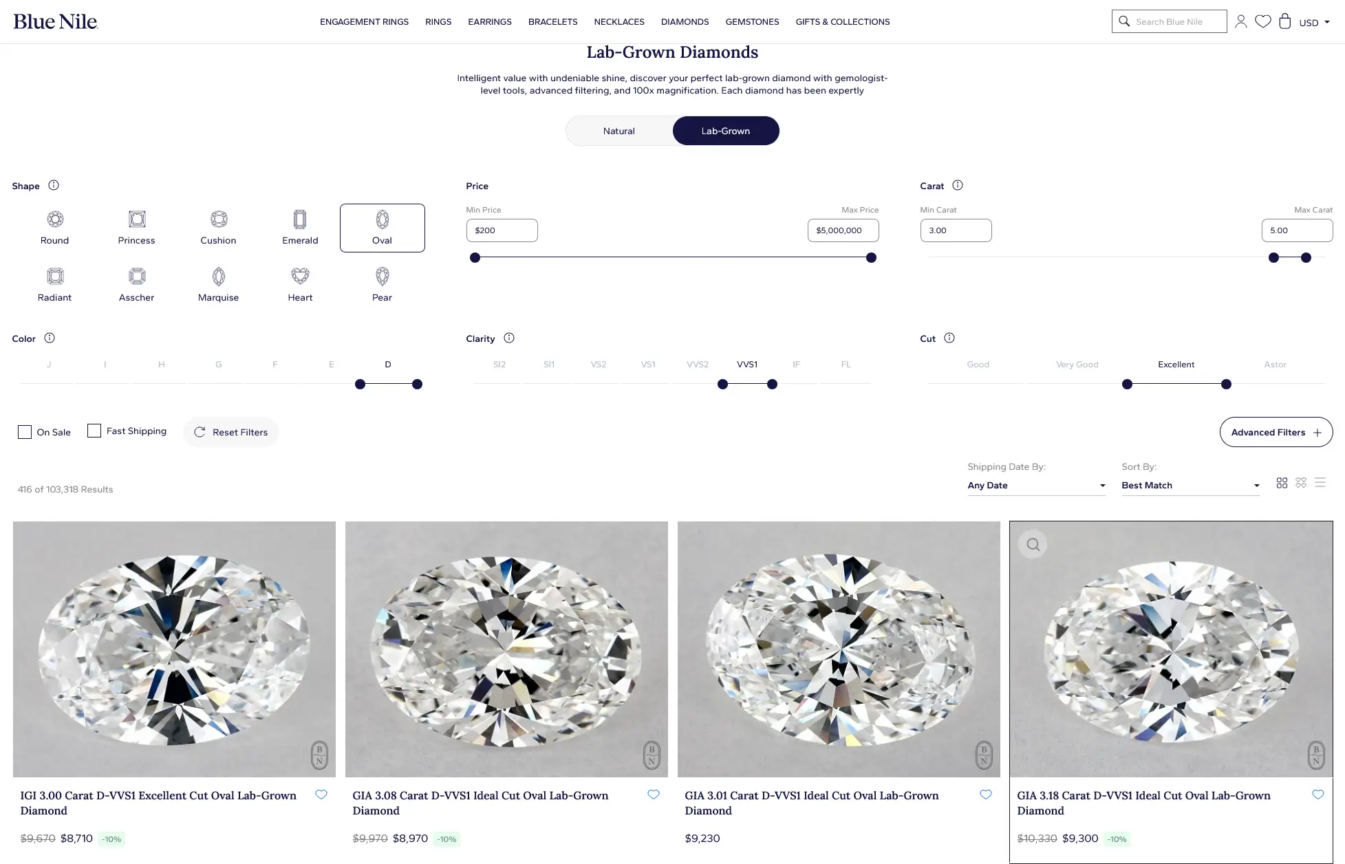 Then come to our site and find the same specs. Not similar—identical. Same certification body (GIA or IGI), same grades across the board.